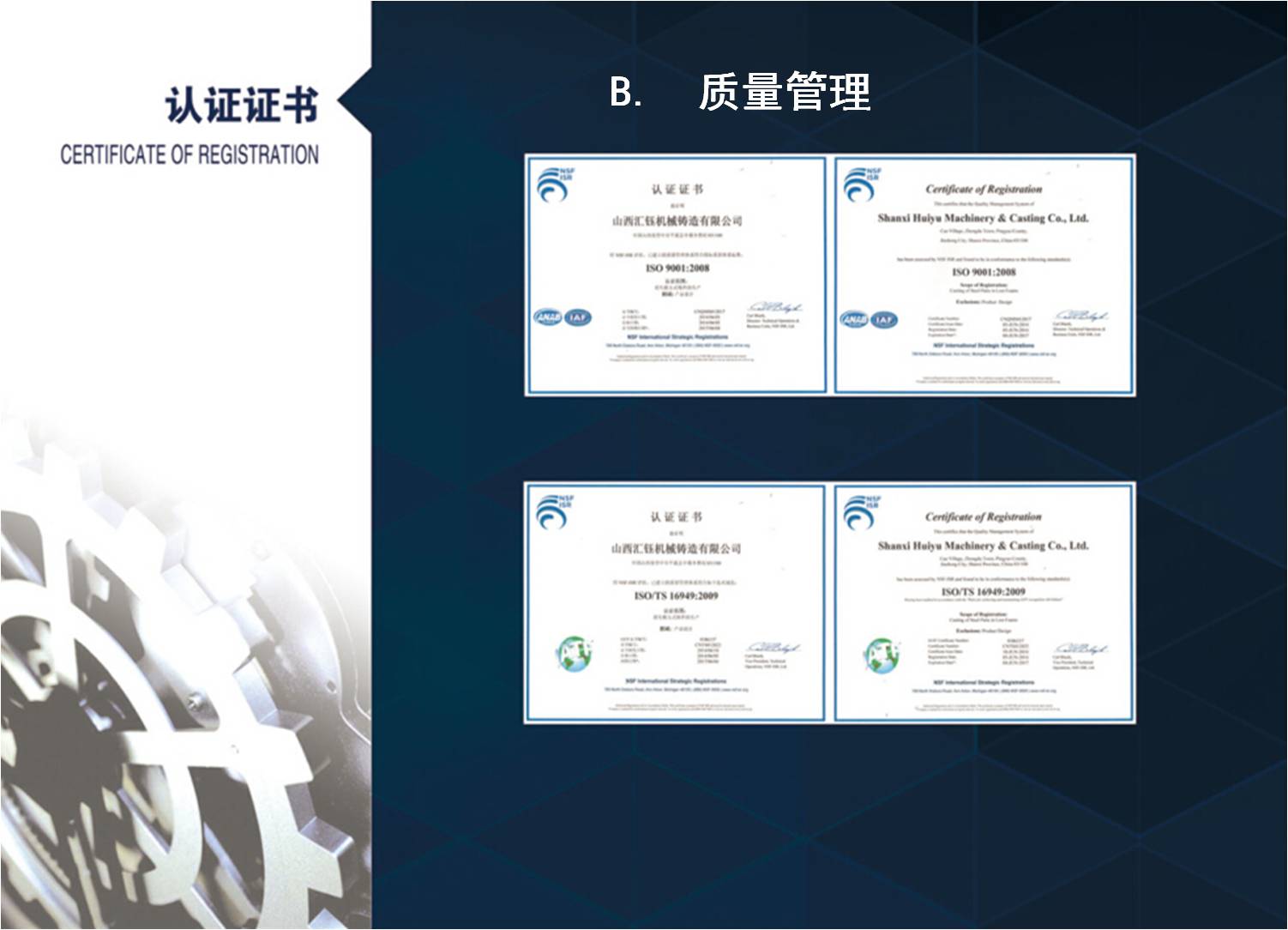 山西匯鈺機(jī)械鑄造有限公司創(chuàng)建于2013年,是峰巖鑄造集聚區(qū)建設(shè)的首期工程項(xiàng)目,于2016年6月經(jīng)國(guó)家工信部《鑄造行業(yè)準(zhǔn)入條件》審核,獲得第三批準(zhǔn)入。現(xiàn)己建成兩條年產(chǎn)3萬噸消失模鑄造自動(dòng)生產(chǎn)線并投產(chǎn)運(yùn)行,配套美國(guó)應(yīng)達(dá)3噸、6噸熔化爐以及20噸保溫爐;檢測(cè)儀器有德國(guó)OBLF光譜分析儀、爐前快速熱分析儀、金相顯微鏡、碳硫分析儀、拉力試驗(yàn)機(jī)和硬度計(jì)等。具備灰口鑄鐵、合金鑄鐵、球墨鑄鐵、蠕墨鑄鐵、奧貝氏體球鐵等鑄件產(chǎn)品的開發(fā)和生產(chǎn)能力。目前主要產(chǎn)品有:電機(jī)機(jī)座、紡機(jī)配件、水泵、閥門、電力系統(tǒng)配重、箱體等六大系列,共計(jì)2000余種。